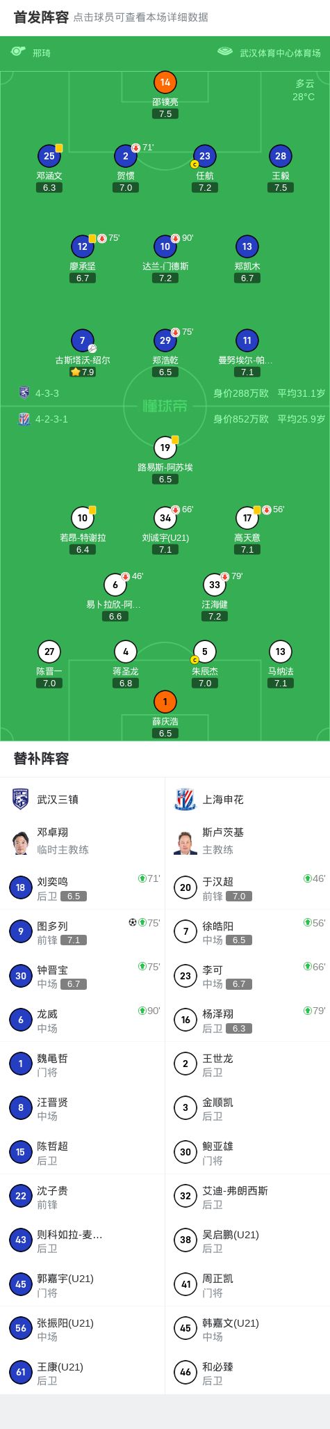 8月31日,中国足球超级联赛第23轮,武汉三镇坐镇主场迎战上海申花。武汉三镇外援图多列攻入全场唯一进球,绍尔送出助攻,邓涵文射门中楣,申花方面,阿苏埃两粒进球因越位被吹。最终,武汉三镇以1比0绝杀上海申花。